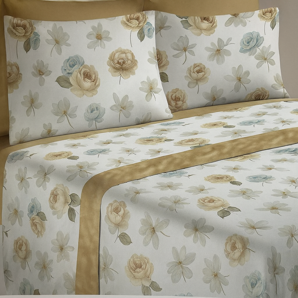 Lenzuolo Copriletto Matrimoniale - LEA - 100% COTONE stampa digitale 3D Marta Marzotto + 2 federe Made in Italy