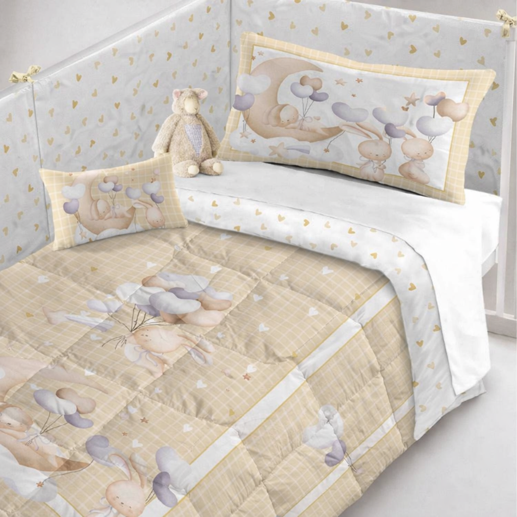 Trapunta per culla con paracolpi, SWEET DREAMS, Marta Marzotto, vari colori, 130cm × 160cm Made in italy