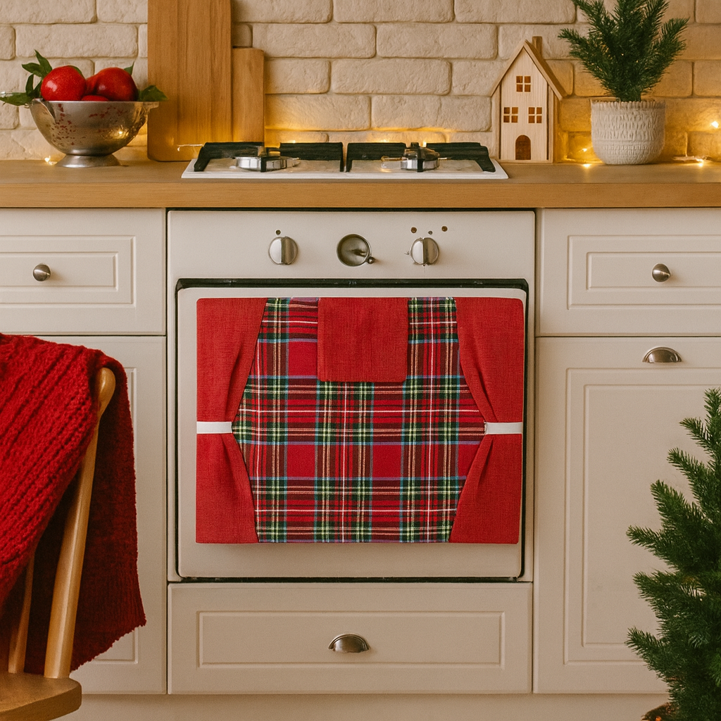 COPRIFORNO imbottito natalizio fantasia TARTAN cucina coprifornelli 55cm X 42cm coordinato Made in Italy
