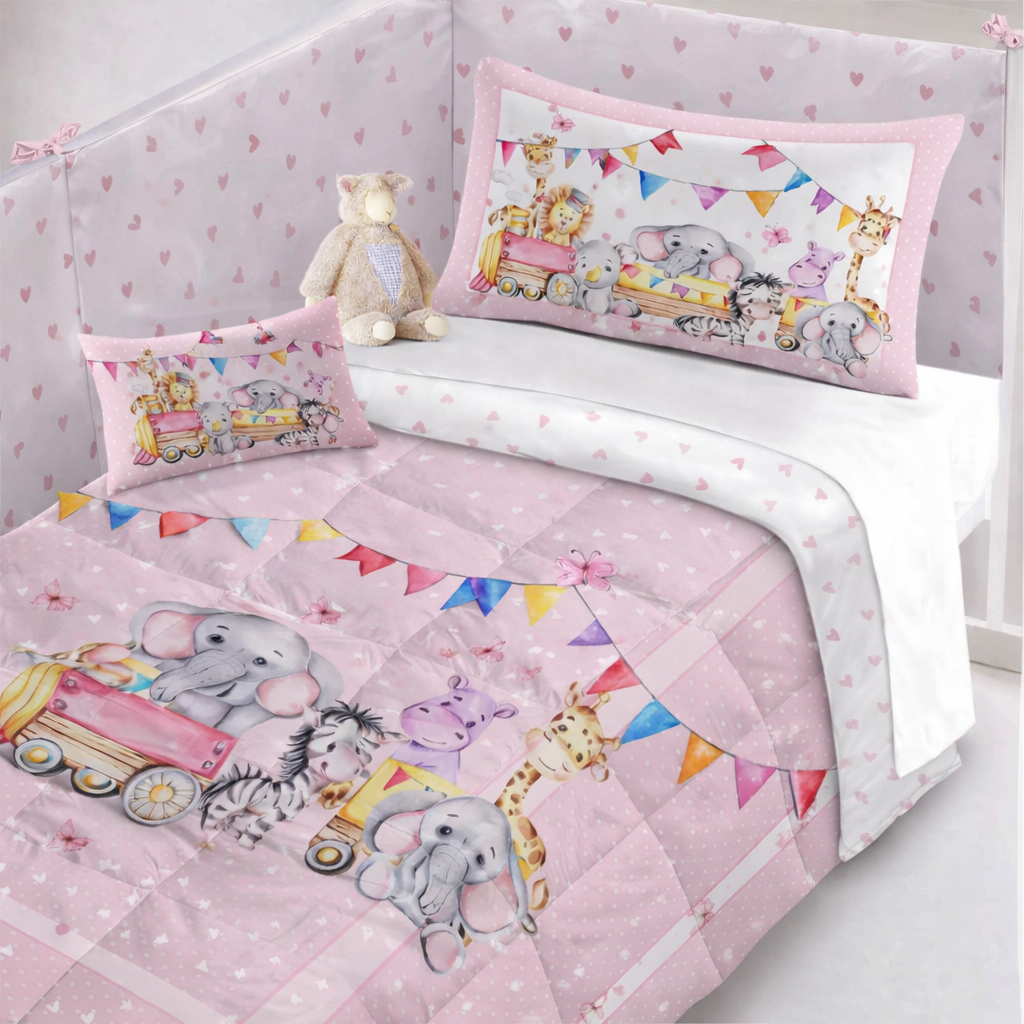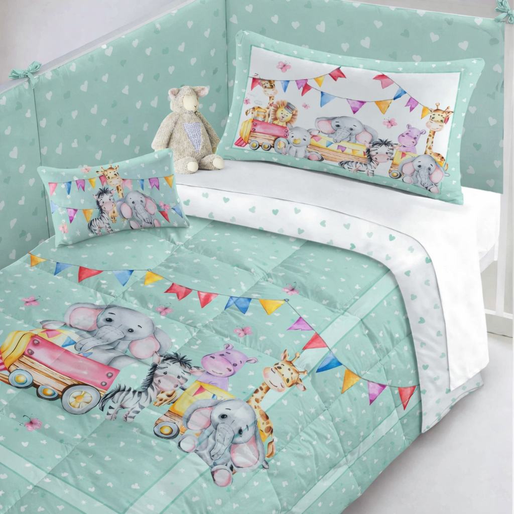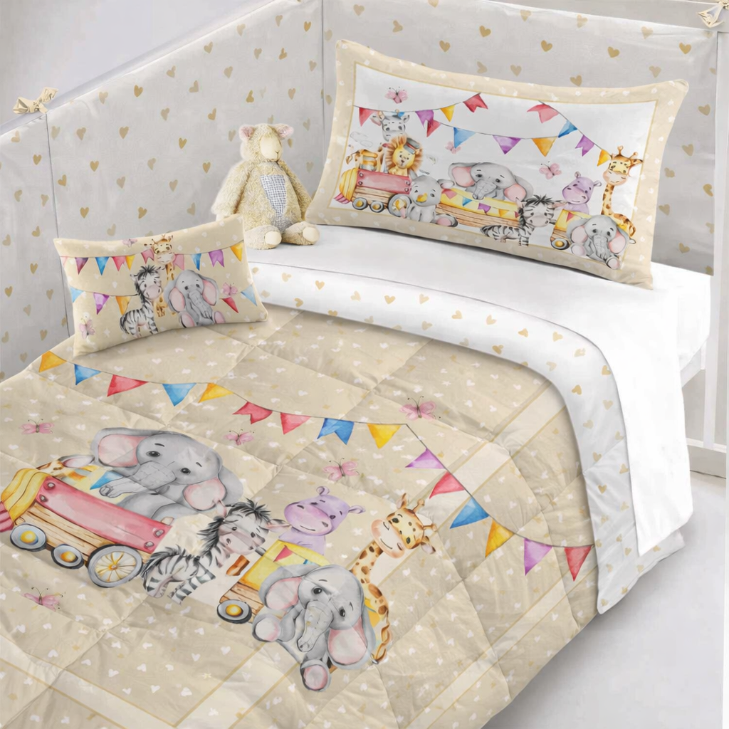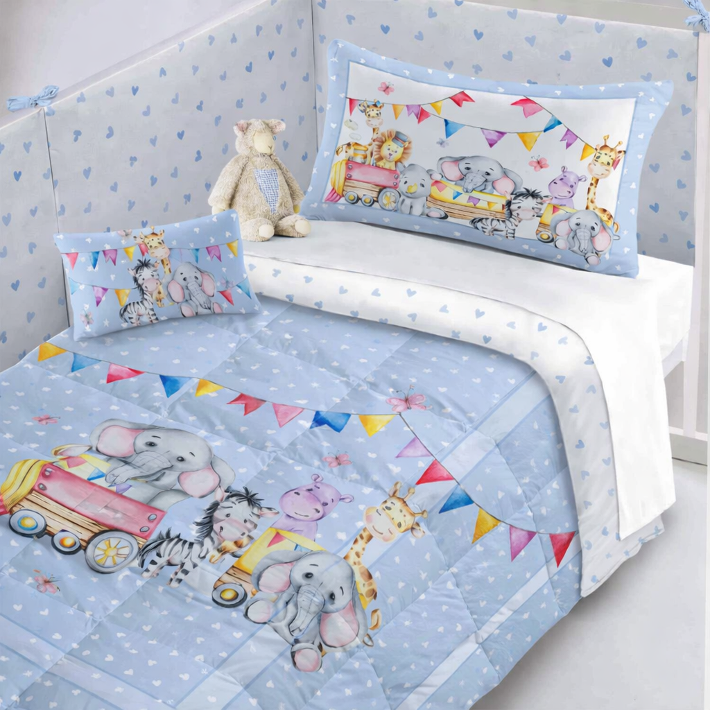 Trapunta per culla con paracolpi, HAPPY TRAIN, Marta Marzotto, vari colori, 130×160cm Made in italy