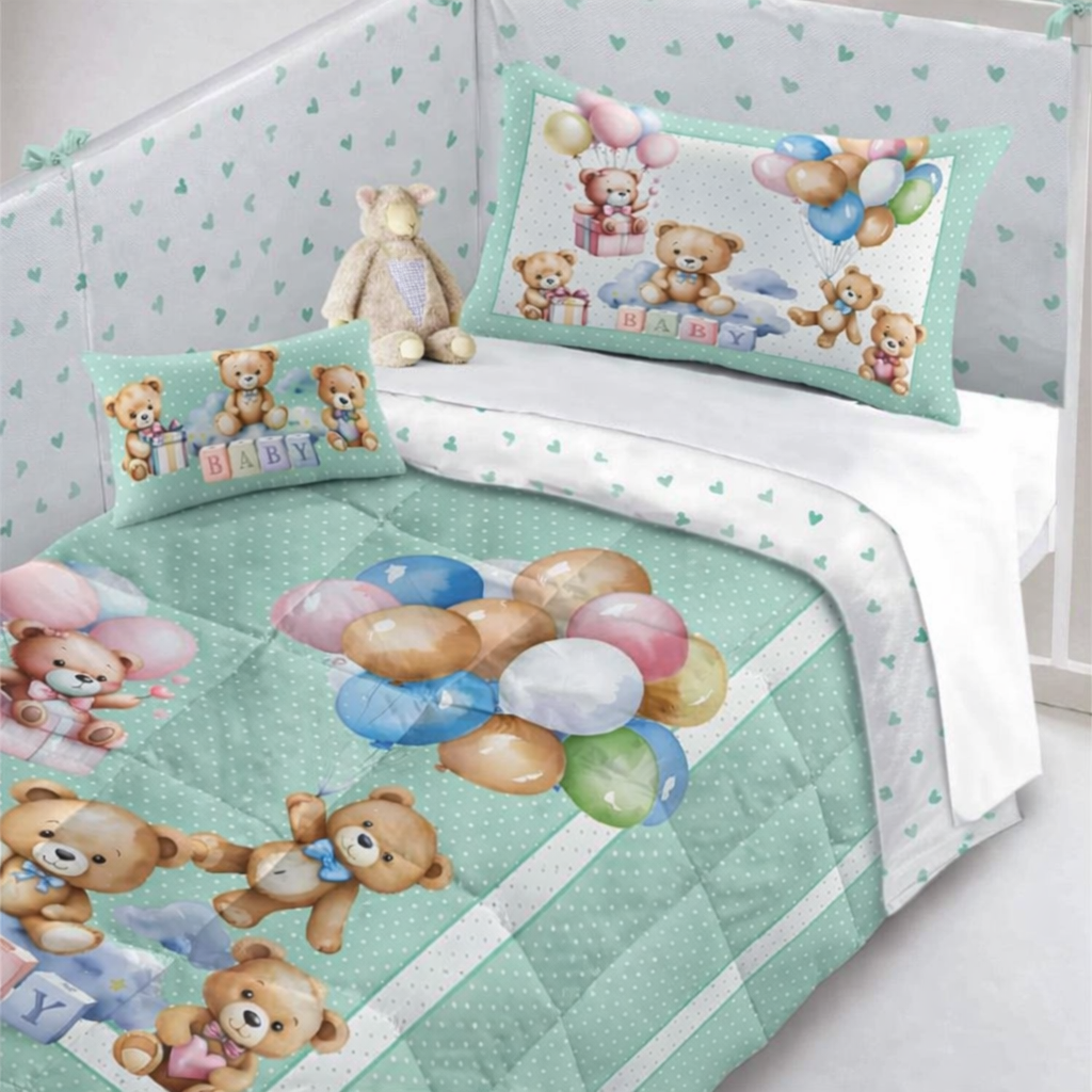 Trapunta per culla con paracolpi, TEDDY BEAR, Marta Marzotto, vari colori, 130cm × 160cm Made in italy