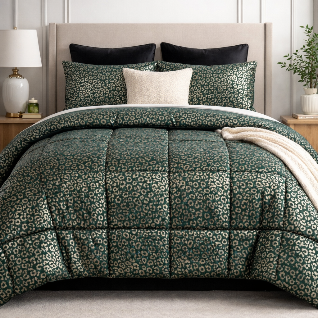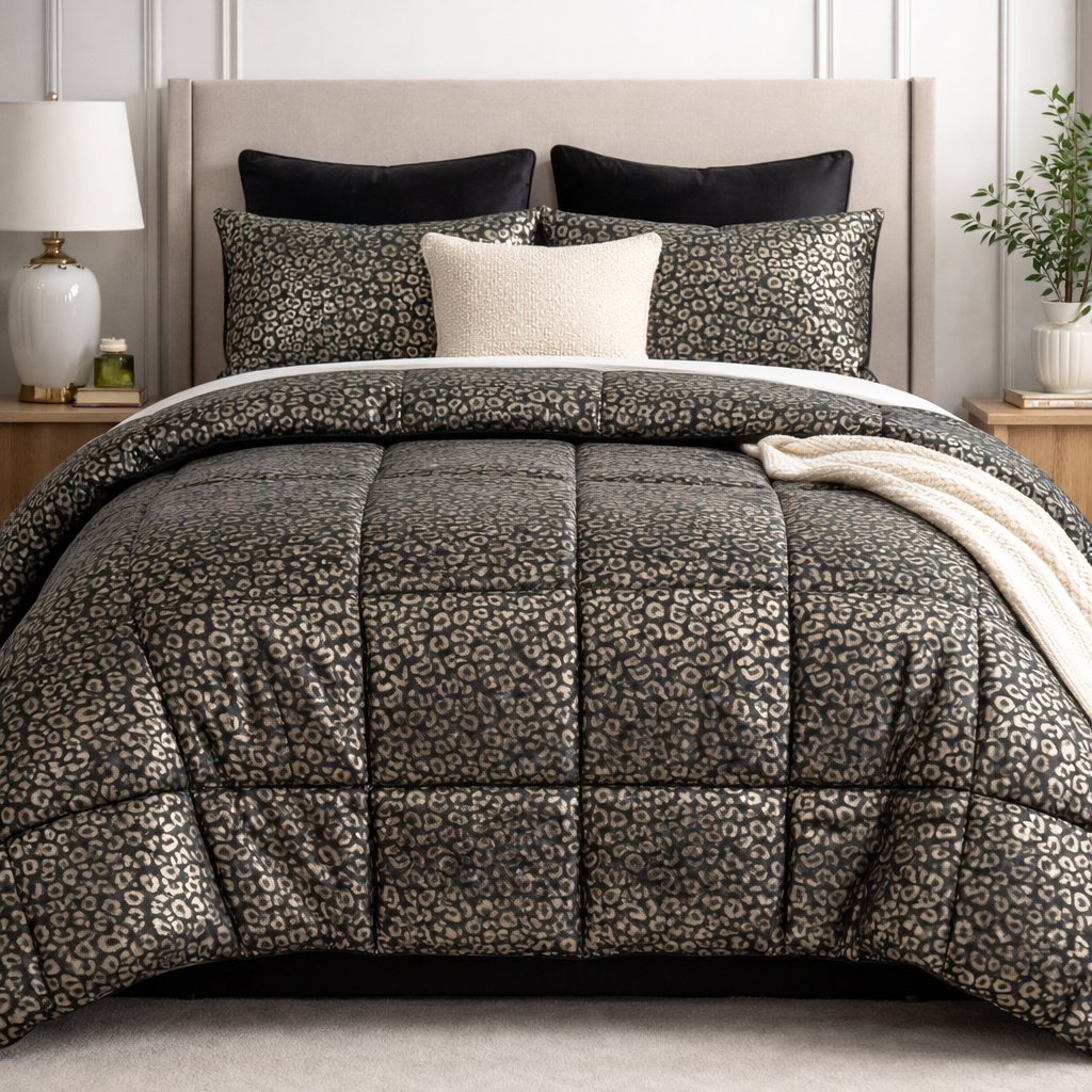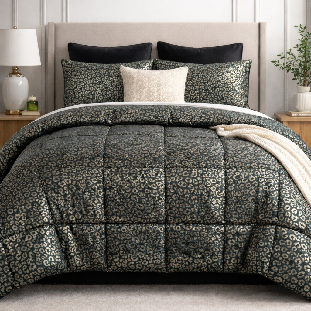 Trapunta Invernale Matrimoniale in velluto, CLAIRE, Pierre Cardin, fantasia animalier, Made in Italy