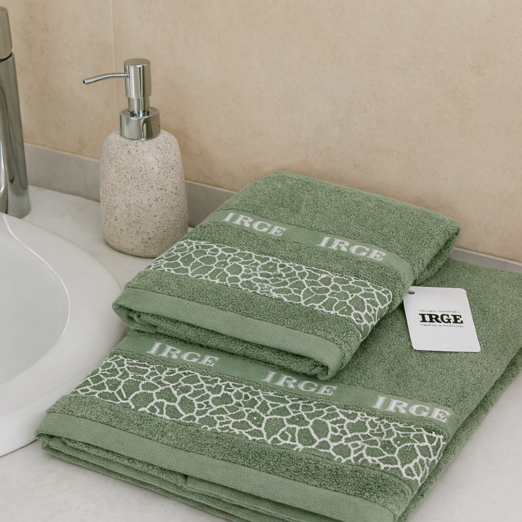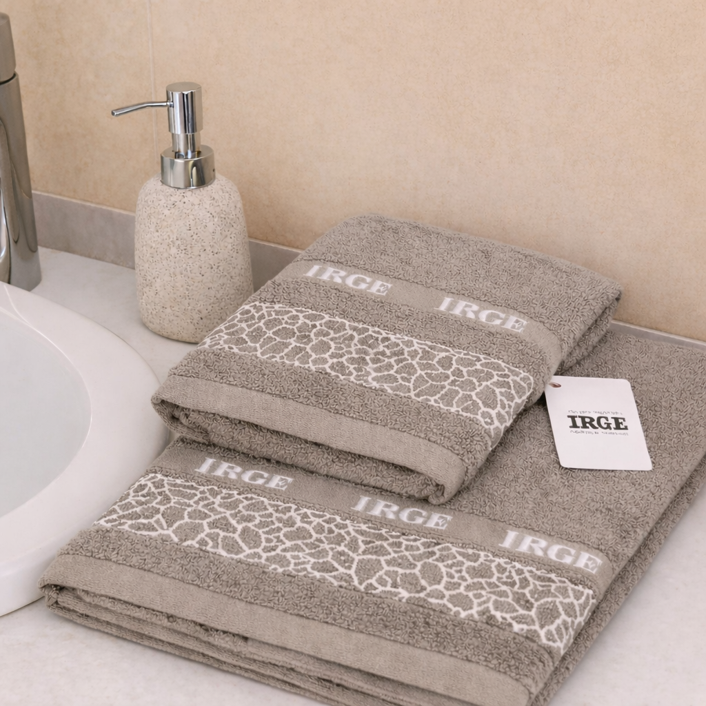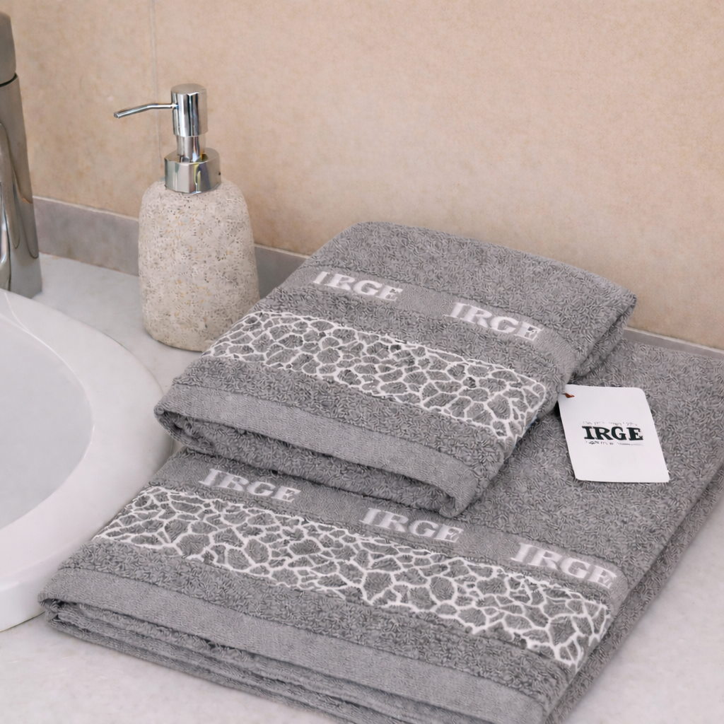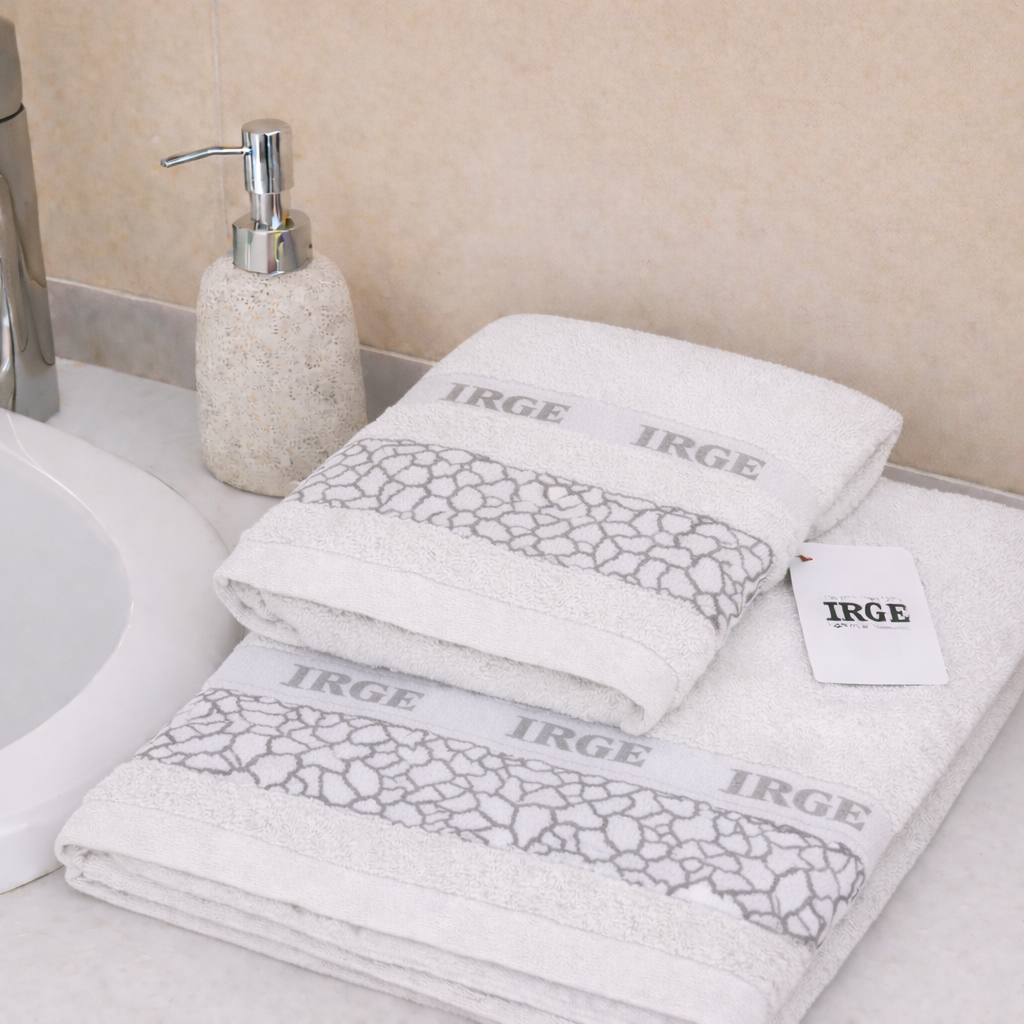 Complet avec plus de serviette de visage invité, signée IRGE, dans sa simplicité, il devient un service élégant et merveilleux pour votre salle de bain.