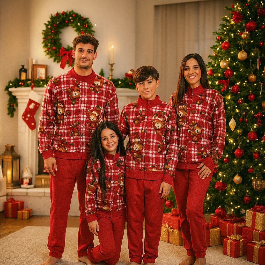 Pigiama in Pile BIMBO/A Natalizio mod. ORSETTI con ZIP - Sommaruga, Made in Italy, natale 1107