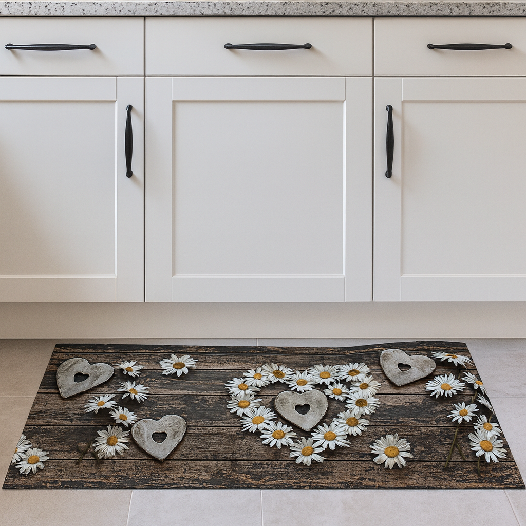 Tappeto Passatoia Cuore di Margherite MARRONE - Marta Marzotto 100% Made in Italy Gommato Antiscivolo Antimacchia stampa 3D