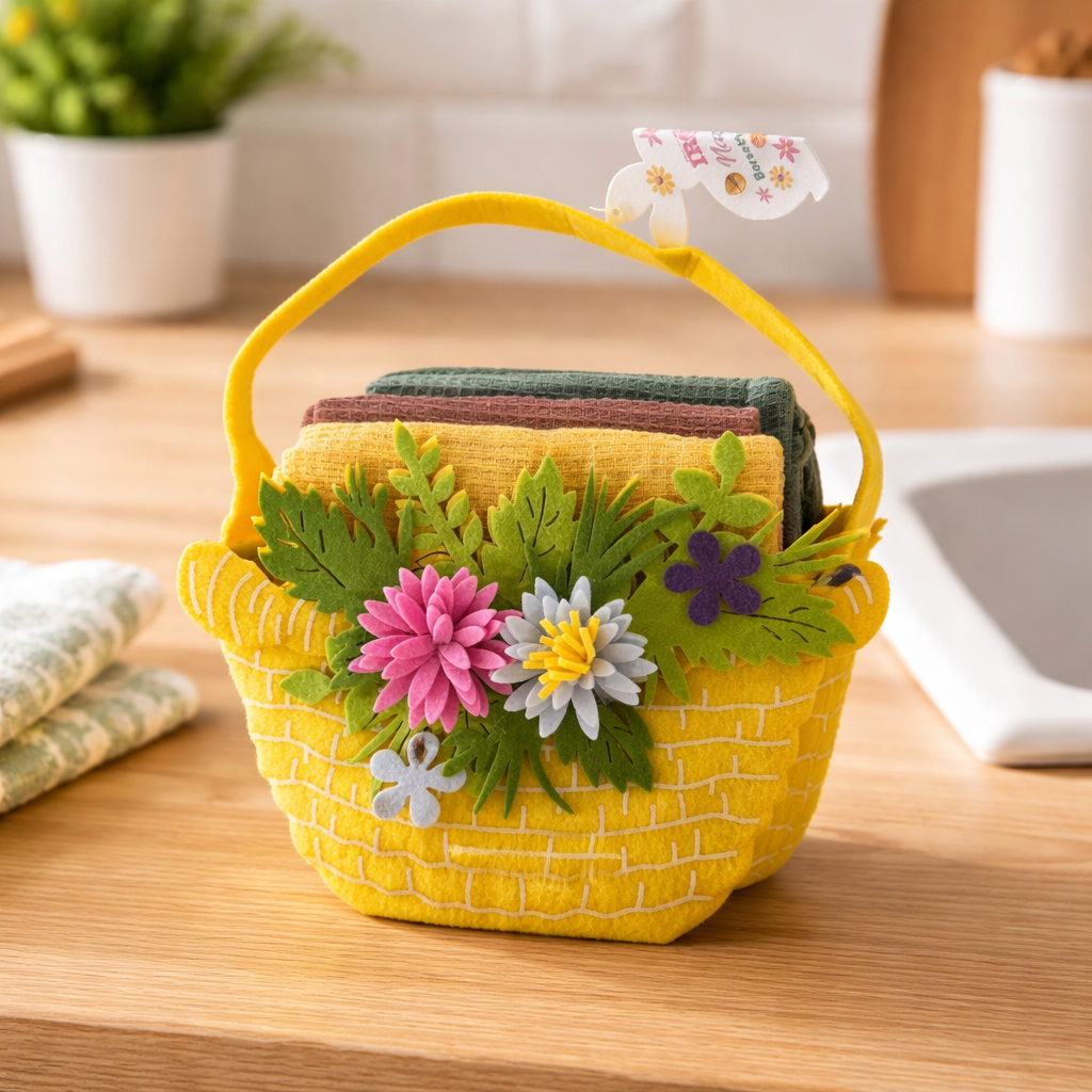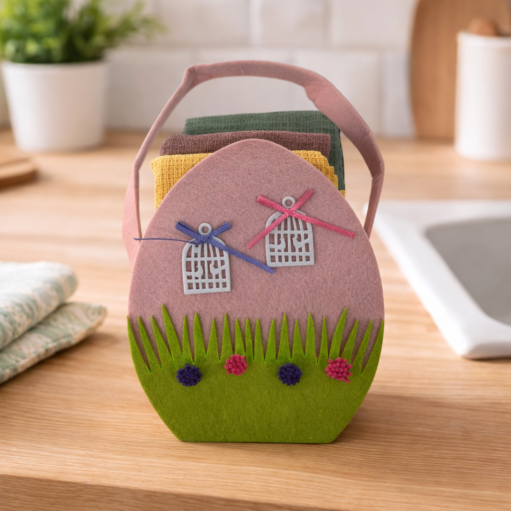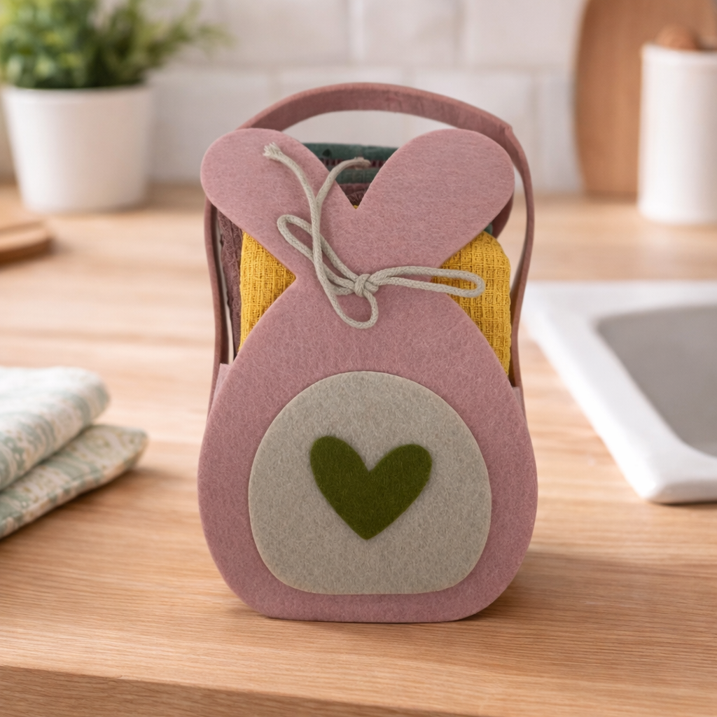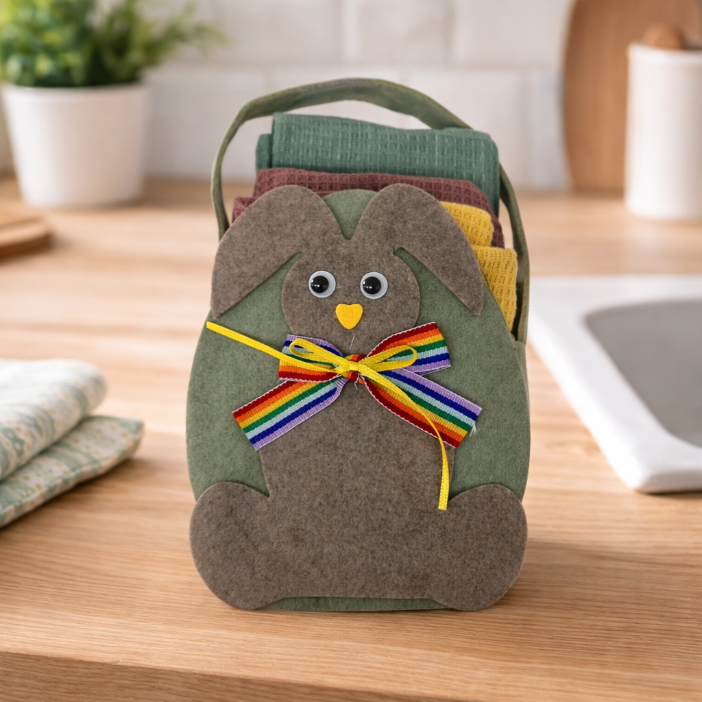 IDEA REGALO - Borsetta con 3 Strofinacci PASQUA IRGE a nido d'ape in borsetta in feltro