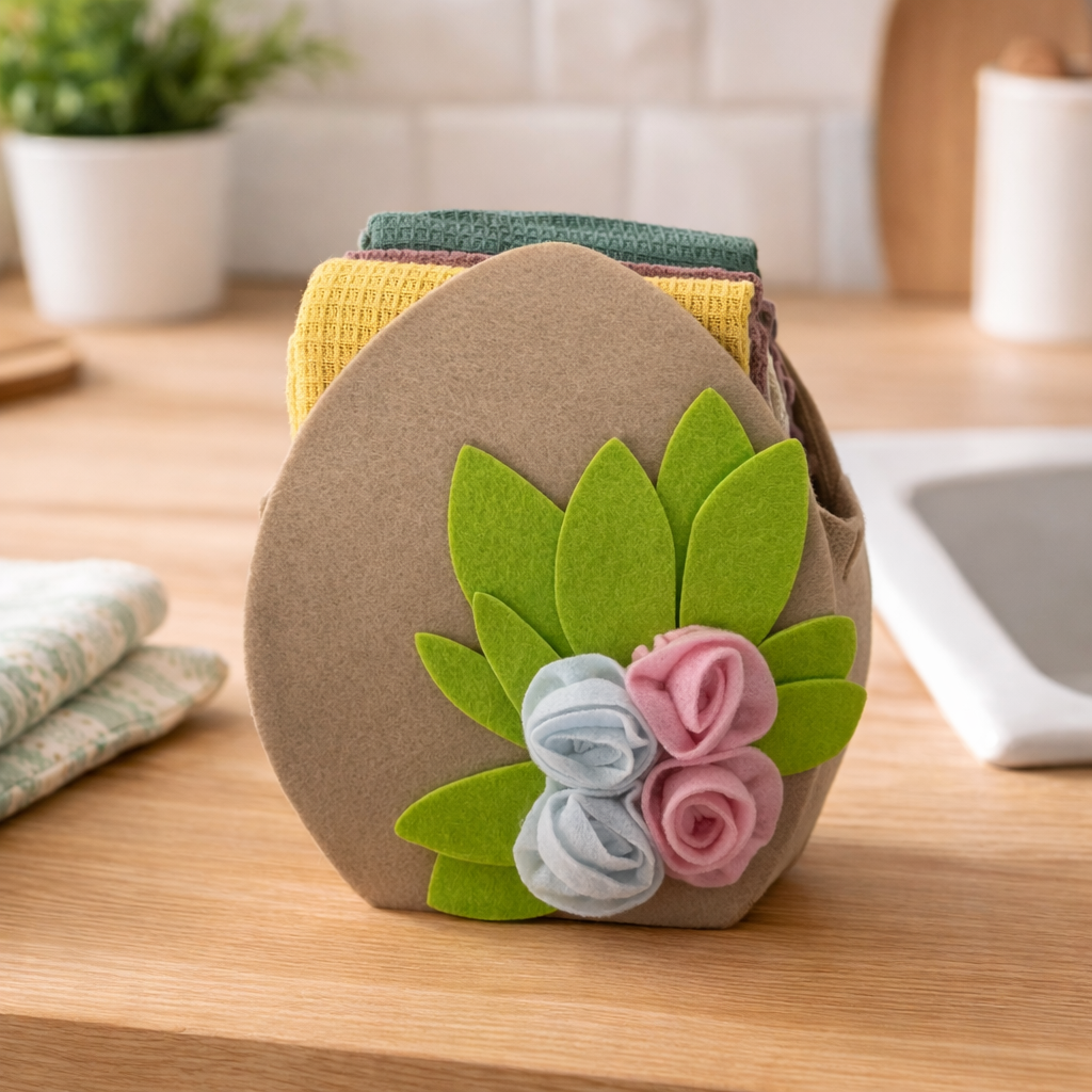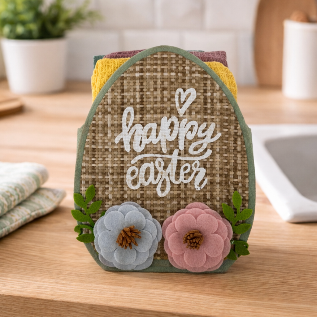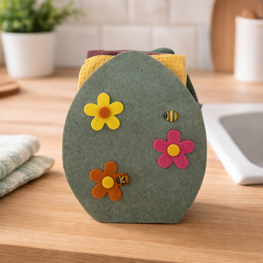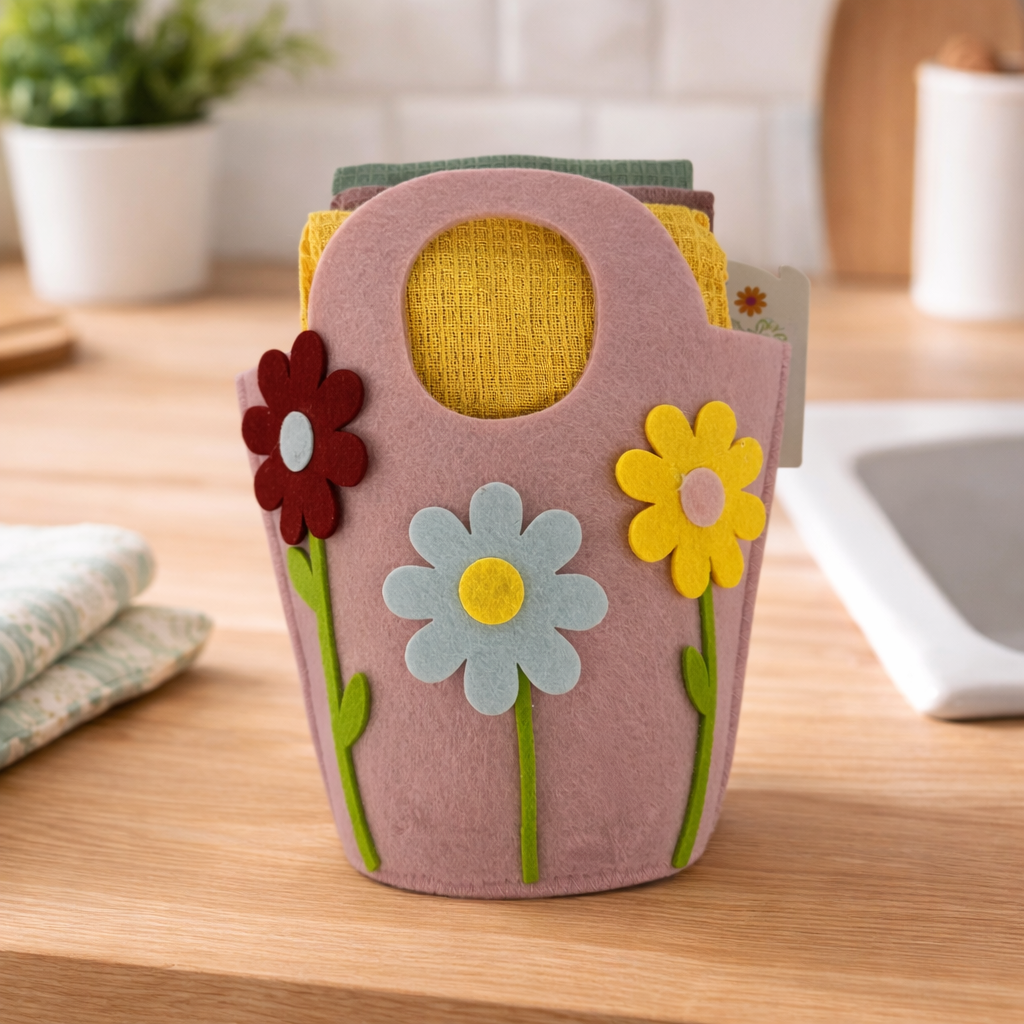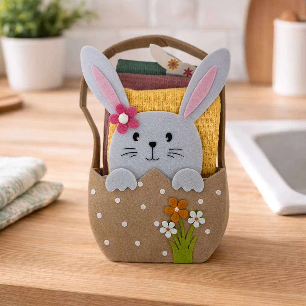 IDEA REGALO - Borsetta con 3 Strofinacci PASQUA IRGE a nido d'ape in borsetta in feltro