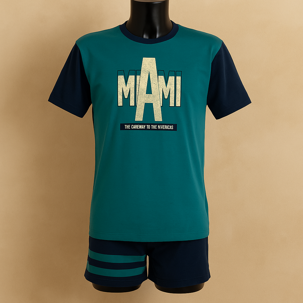 Pigiama Manica Corta e Pantaloncino MIAMI Mastro bianco Cotone Uomo Made in Italy