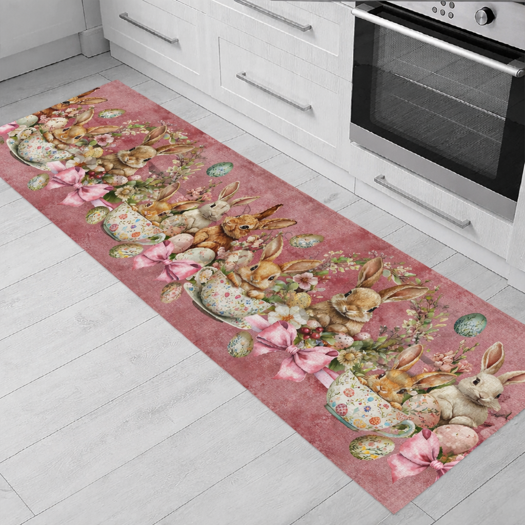 Tappeto Passatoia Cucina, Pasqua, EASTER BUNNY rosa, Marta Marzotto 100% Made in Italy