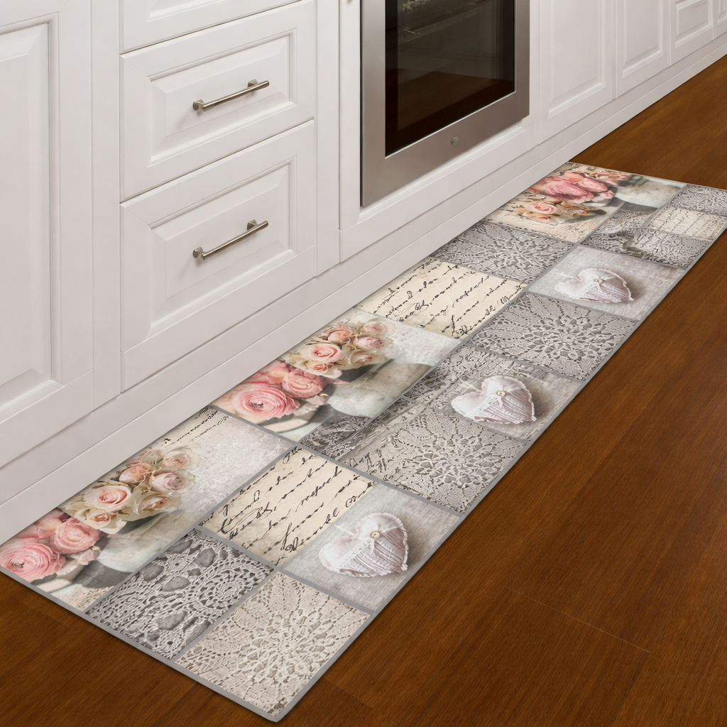 Tappeto Passatoia ROSE SHABBY ROSA - Marta Marzotto 100% Made in Italy Gommato Antiscivolo Antimacchia stampa 3D  Tappeto antimacchia e antiscivolo per la tua cucina. Grazie alle stampe digitali...