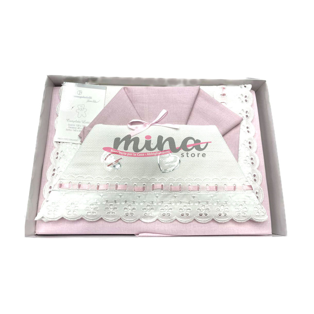 Coppia lettino Nazareno Gabrielli Pizzo di san carlo puro cotone 120x180cm Made in Italy per neonato